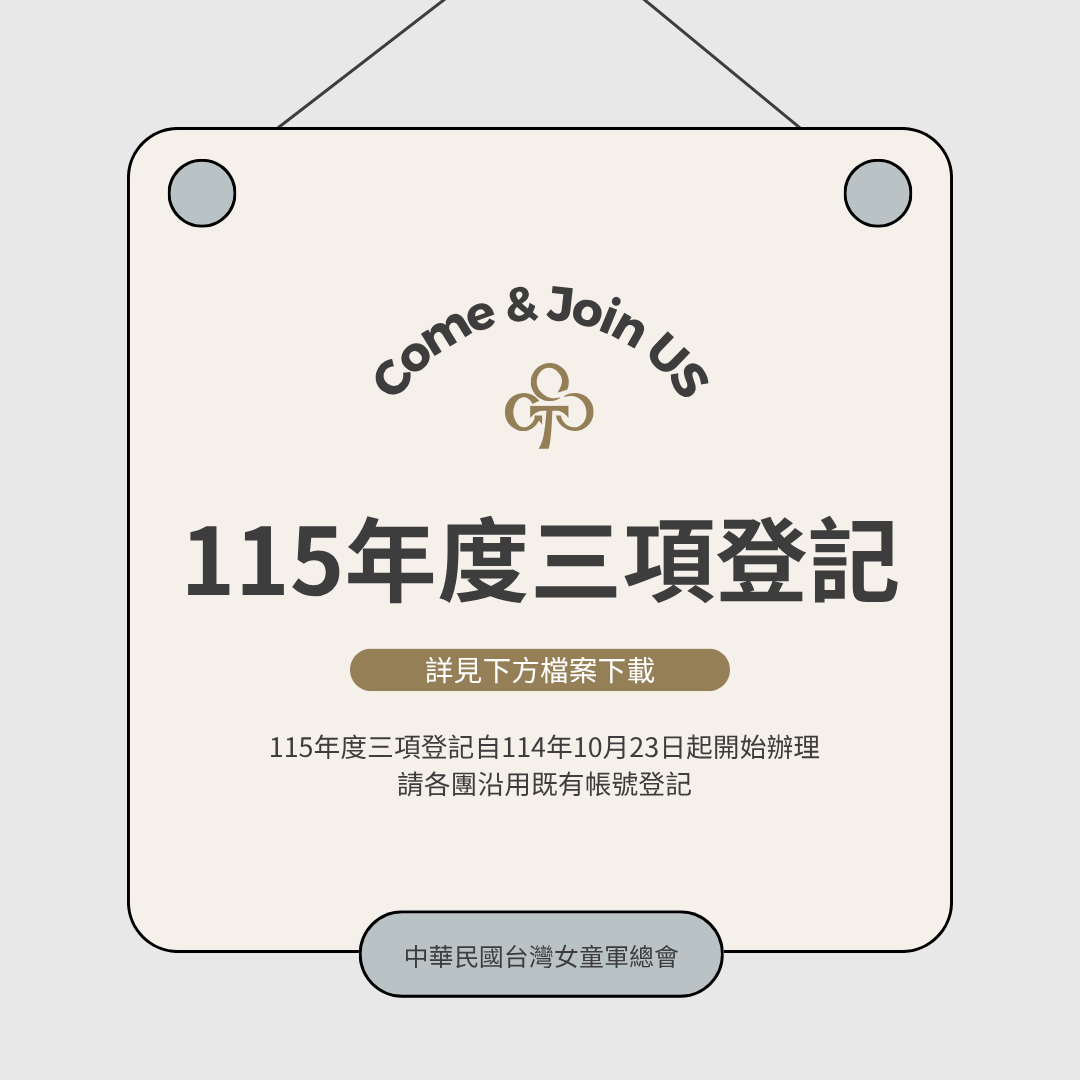 【檔案下載】115年度三項登記受理:女童軍團登記、女童軍成人領袖(服務員)登記、各級女童軍登記